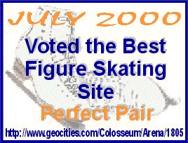 the perfect pair-- first off, I must say that I am *thrilled* to have this site as a winner because it is a Jamie & David site! It is very new, but already packed with info. Photos not found anywhere else, fan encounters, and even Davi's diary from Stars on Ice in Germany! (Which is sooooo cute!) I know this site is going to continue to grow and just get better and better! I congratulate the webmistress (who seems really nice, by the way!) on the faboulos job she's doing, and thnk her sincerely for her appreciation of our "perfect Pair"